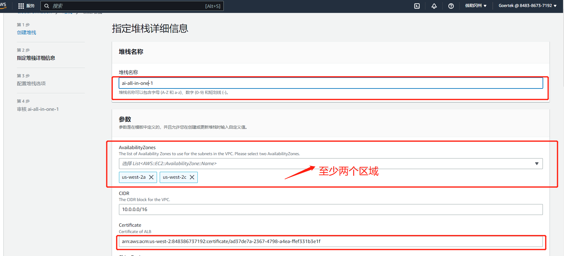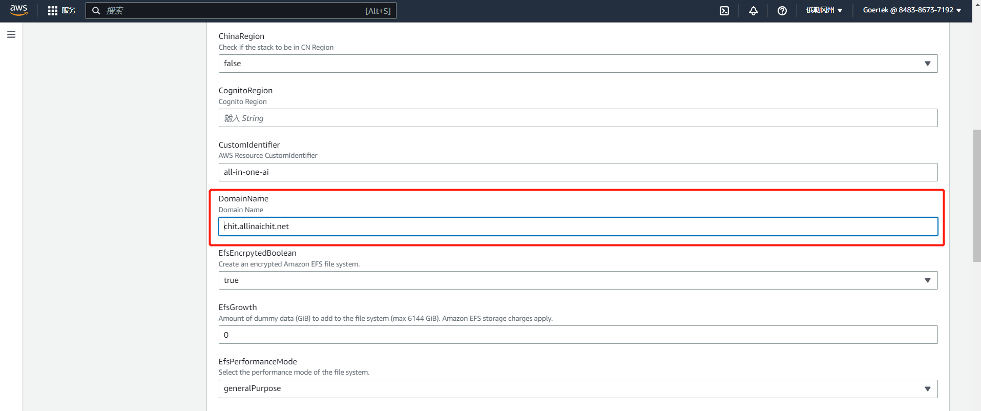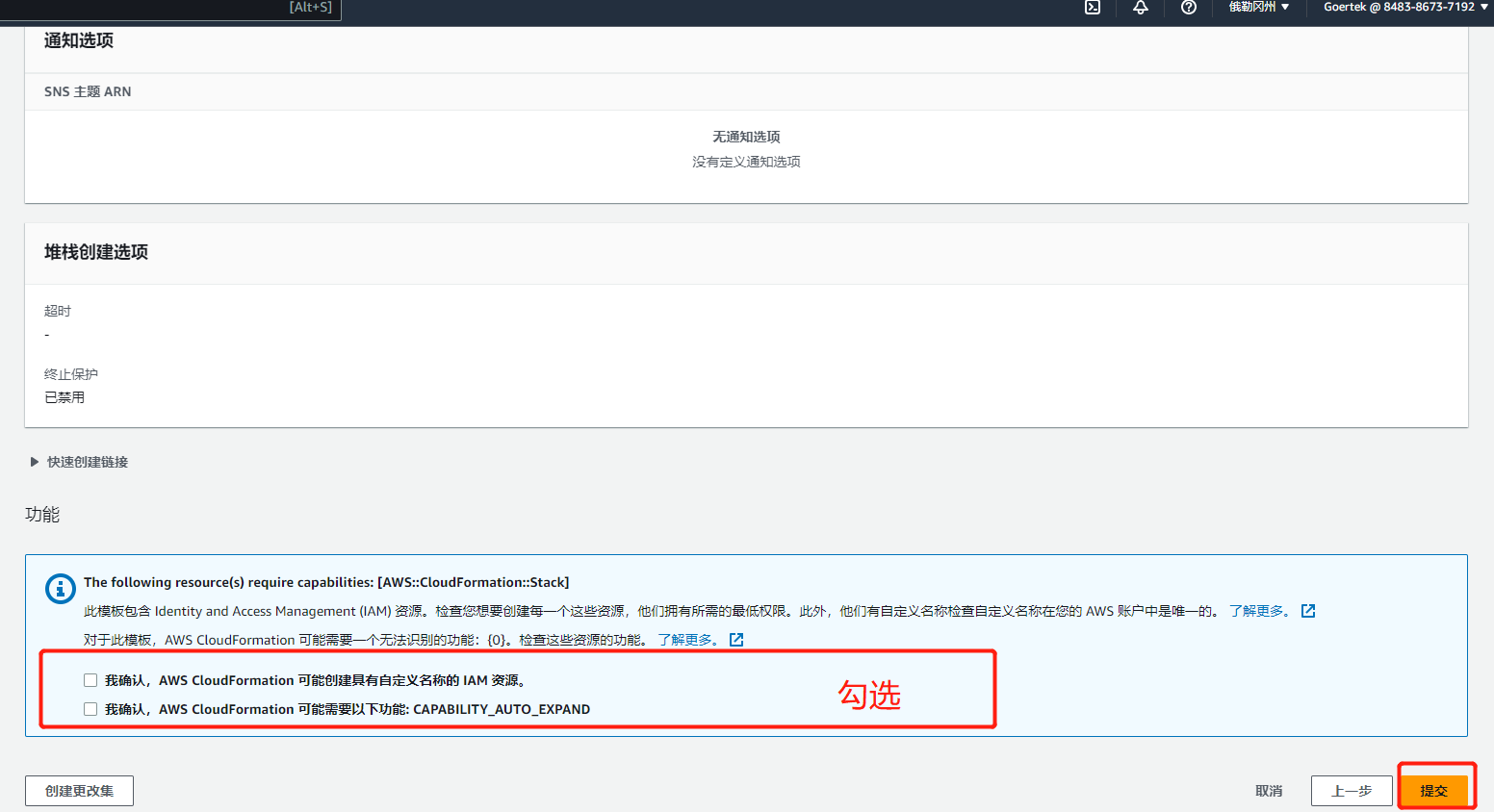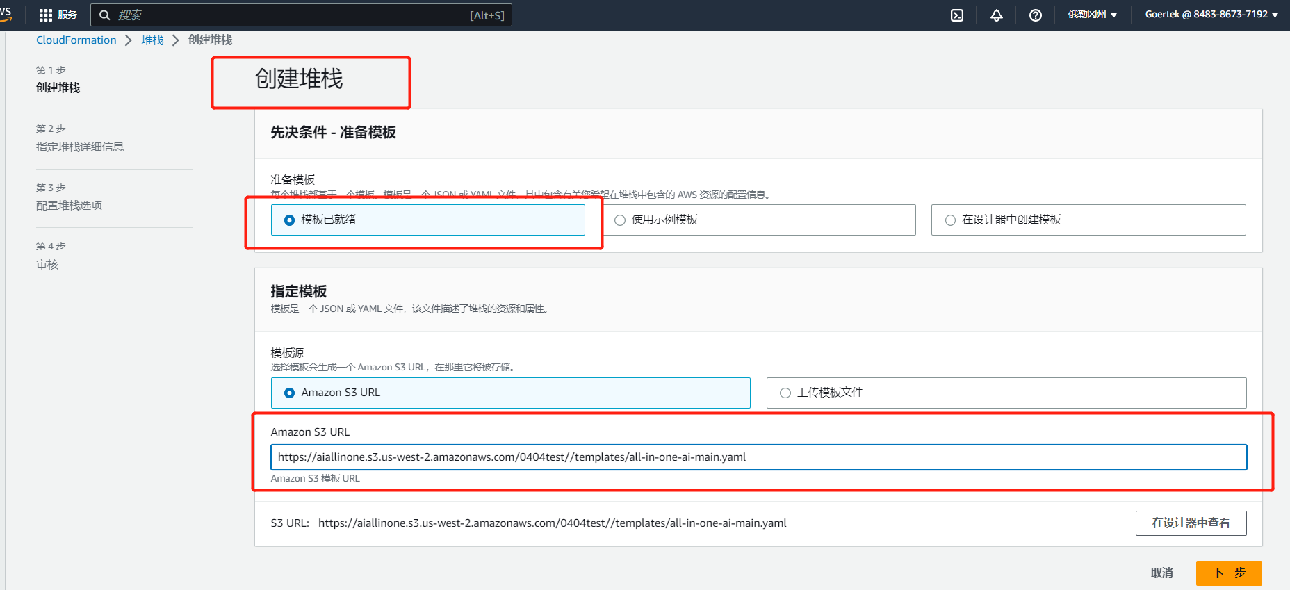 执行cloudfomation配置(填写S3URL、证书、域名等信息内容)