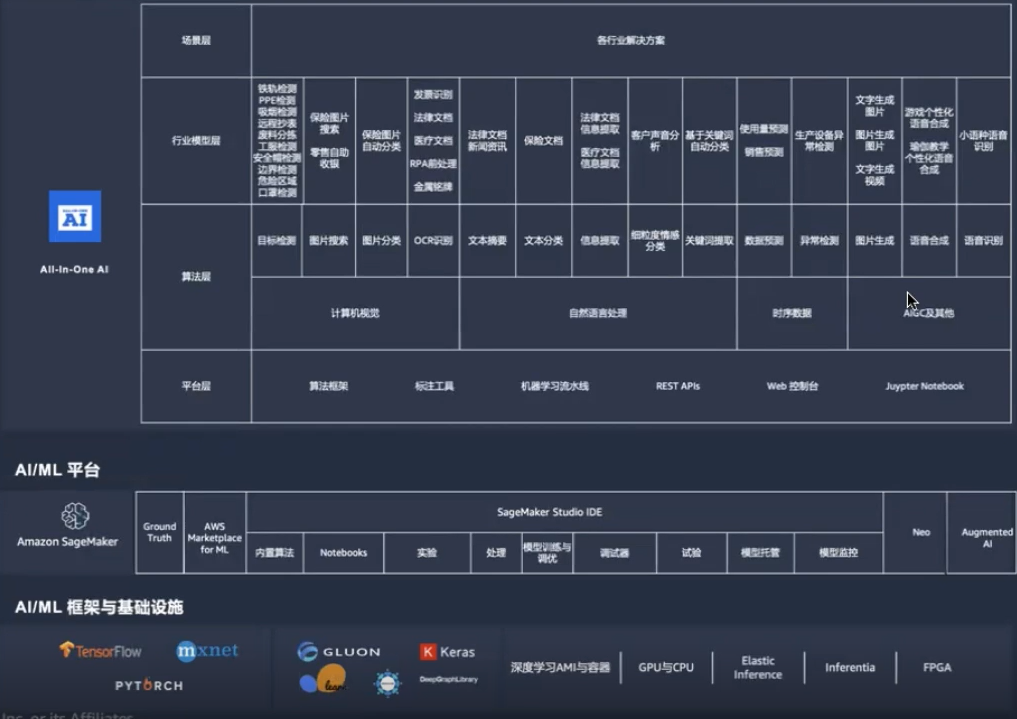 AI百宝箱解决方案包括适用于特定业务场景的AI/ML模型,如对象检测、图像分类、文本识别、对象提取/生成、文本摘要、意图识别、知识图谱、时间序列预测等,可广泛应用于制造、维护、企业安全生产、内容生产、文档识别、评论识别、短视频内容理解和生成、个性化推荐、广告投放、销售预测等。