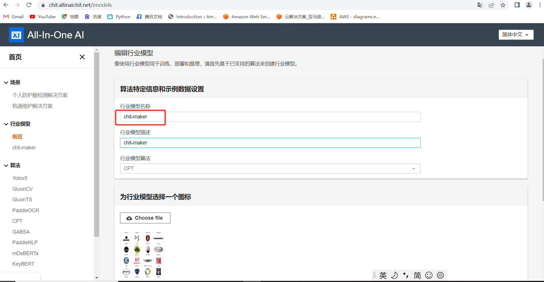 将目录切换到 [path-to-all-in-one-ai]/deployment 并运行以下命令打包 python 代码并为 Web 门户构建 docker 镜像,然后将资产上传到 S3 并将 docker 镜像推送到 ECR 哪个区域是与 CloudFormation 堆栈所在的相同 AWS 区域。这可能需要 15-30 分钟。参数 s3uri 和 aws-region 是必需的,而参数 algorithm 是可选的,用于指定将内置哪种算法,如果未提供,则将内置所有算法。