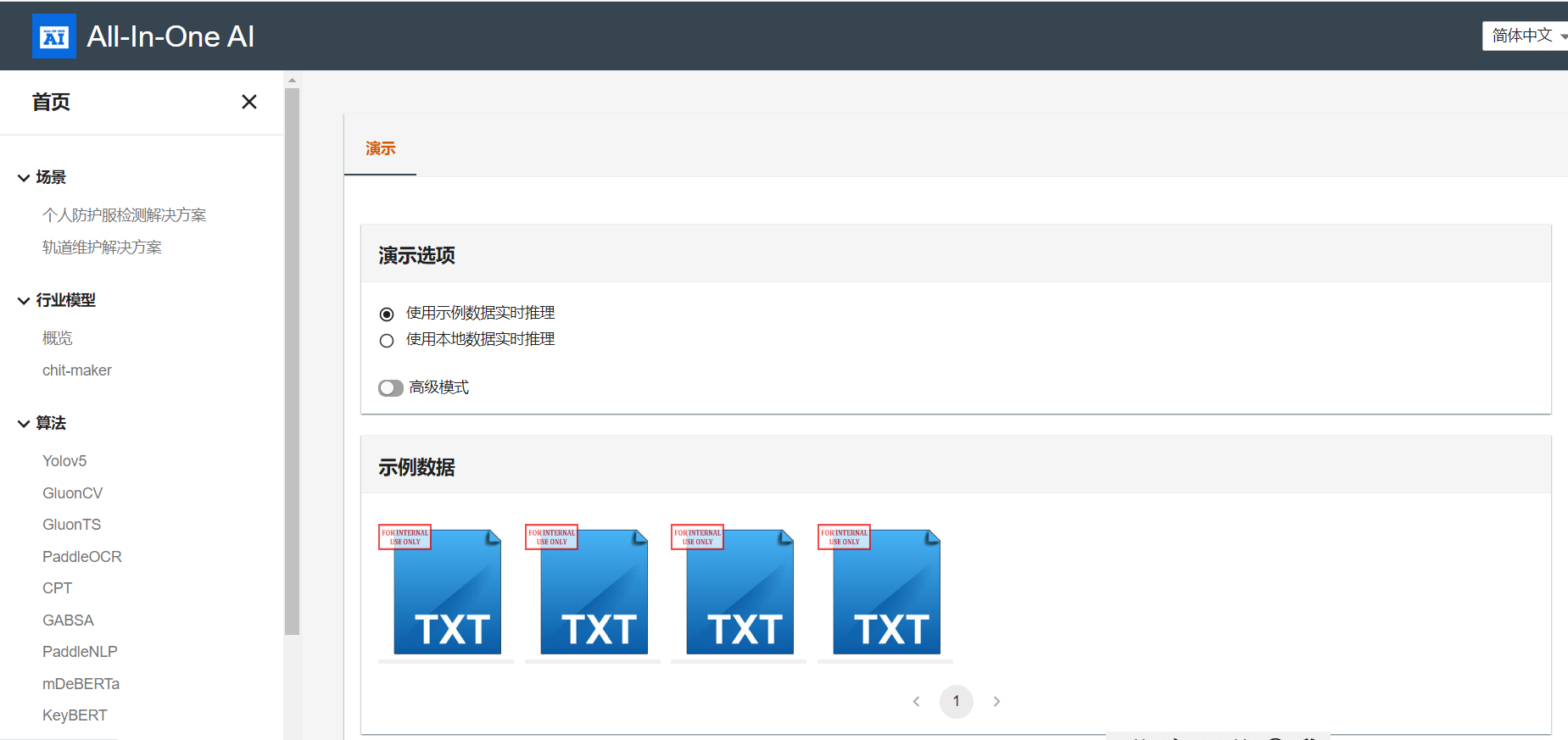 已经支持多种机器学习算法,包括对象检测、图像分类、OCR/表格识别、文本摘要、文本分类、命名实体/关系识别、细粒度情感分析等。您可以根据自己的支持的算法数据按需定制工业模型。