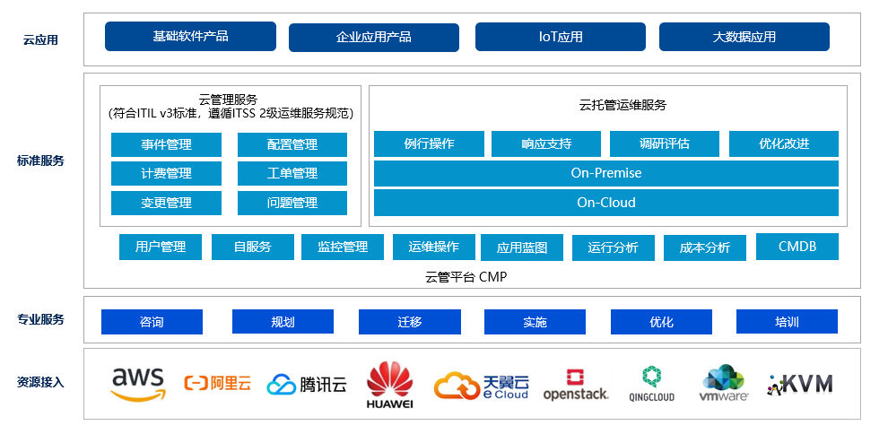 提供云实施和交付服务。包含项目管理、实施部署、架构优化、云方案落地、技能专家服务。